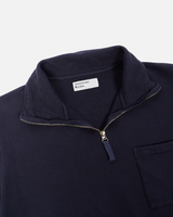 UNIVERSAL WORKS HALF ZIP SWEATSHIRT IN NAVY DRY HANDLE LOOPBACK