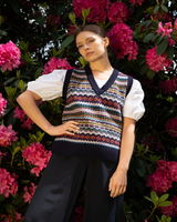 This 100% extra fine lambswool tank is a brand new design for this year. Using their traditional retro nordic patterns Quinton Chadwick have created a modern sleeveless V neck.