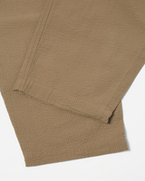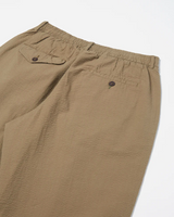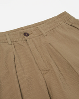 UNIVERSAL WORKS PLEATED TRACK PANT IN OLIVE COTTON SEERSUCKER