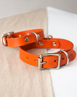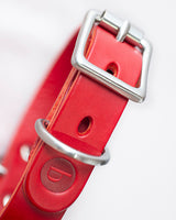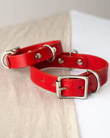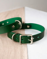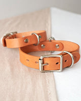 Our Buttero leather dog collar in ‘COLOUR’ is simple in design, understated, functional and made to last. An extra d-ring in the centre of the collar let’s you choose where you would like to attach your dog’s lead.