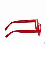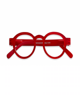 These round, 'Circle Twist' small reading glasses are an attractive design with red frames and are available in strengths from +1 to +3.