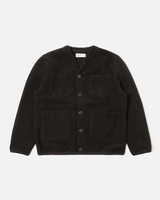 UNIVERSAL WORKS CARDIGAN IN BLACK WOOL FLEECE