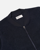 UNIVERSAL WORKS ZIP BOMBER IN NAVY WOOL FLEECE