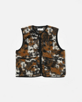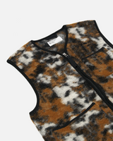 UNIVERSAL WORKS ZIP GILET IN BROWN YLANG FLOWER MOUNTAIN FLEECE