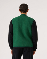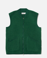 UNIVERSAL WORKS ZIP WAISTCOAT IN GREEN WOOL FLEECE