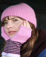 These mittens have a gorgeous fluffy quality for being knitted with super soft Angora yarns. They are luxurious yet practical, allowing the fingers to be free for easy phone use.