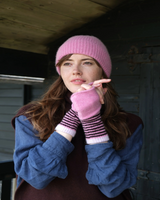 Super soft Angora Fingerless Mittens with a striped contrast colour cuff.