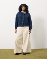 This Frnch blue stripe cardigan has a great boucle texture and is a good weight. What we love about these cardigans is they are fab shakets so great to wear on its own when chilly and not raining. Or layer up in the really cold month.