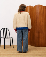 This Frnch cardigan has a great boucle texture and is a good weight. What we love about these cardigans is they are fab shakets so great to wear on its own when chilly and not raining. Or layer up in the really cold month.
