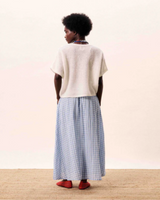Long blue and white gingham check cotton skirt with elasticated waist. Comes with a gorgeous matching shirt making a great co-ord. Comes up a little larger so if in between sizes go down.