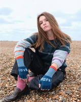 Jess Quinton and Jane Chadwick use British mills for their yarn supplies, always 100% natural and biodegradable fibres. Mostly Lambswool or Merino and they also use Recycled Cashmere when it is available. They like to combine traditional knitting techniques with new technology to make a more sustainable product. Their seamless hats and cut edge scarves are cleverly designed to ensure there is zero yarn waste in the production process.