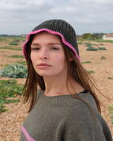 QUINTON CHADWICK MOSS GREEN BUCKET HAT WITH PINK EDGE